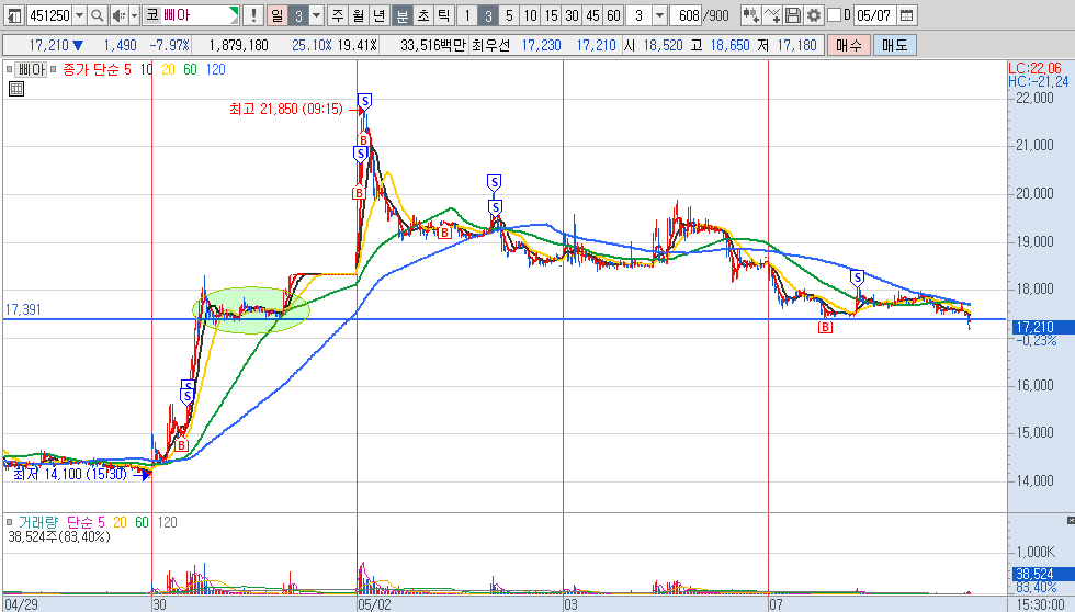 삐아 단타 눌림목 매매(24년 5월 7일)